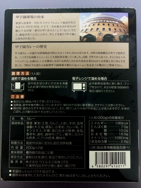 甲子園カレーという事で、どうしても猛虎軍を思い出してしまう事だけが問題であろうと思われます。そこは猛虎軍を食うという事で、来年は我が横浜軍が全勝でありましょう。