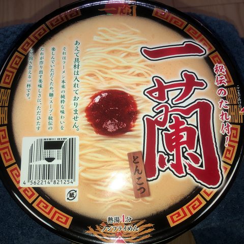 一蘭(カップ麺、具なし、490円)