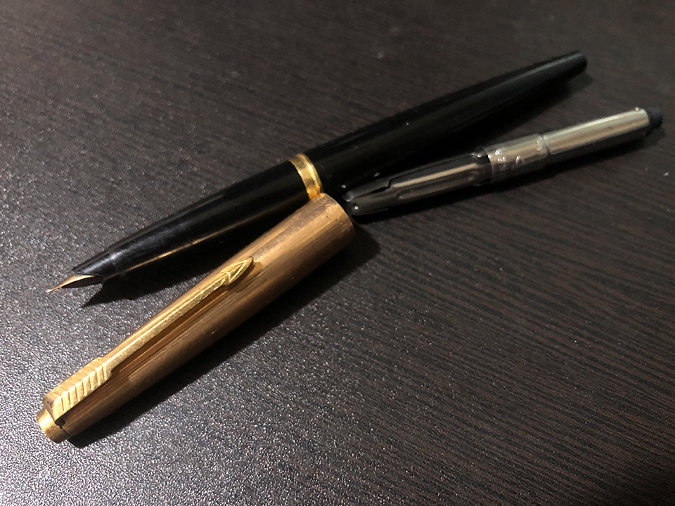 そんな時にふと、その昔、父親から万年筆を貰ったようなと思い出し、筆立てを漁ってみたところ、とても古そうな万年筆が出てきました。恐らく40年以上前のものだと思います。